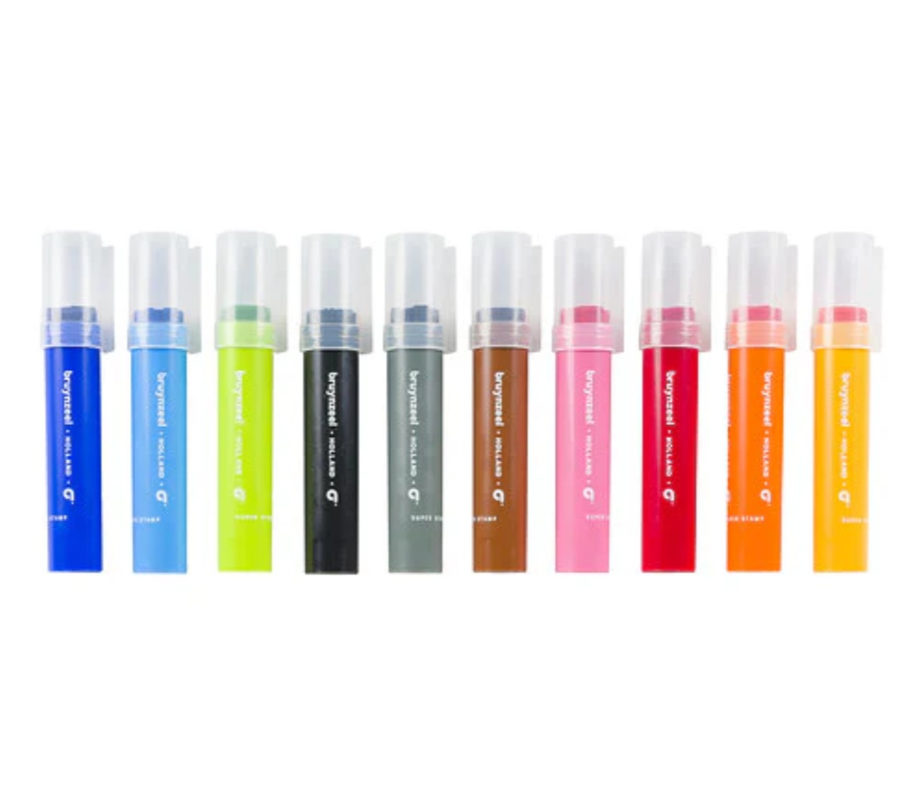 Ekstra paksud lühikesed tempelotsaga viltpliiatsid 10 erinevas disainis ja värvitoonis. Ülikergelt mahapestav tint. Tugeva ja vastupidava akrüülotsaga.
