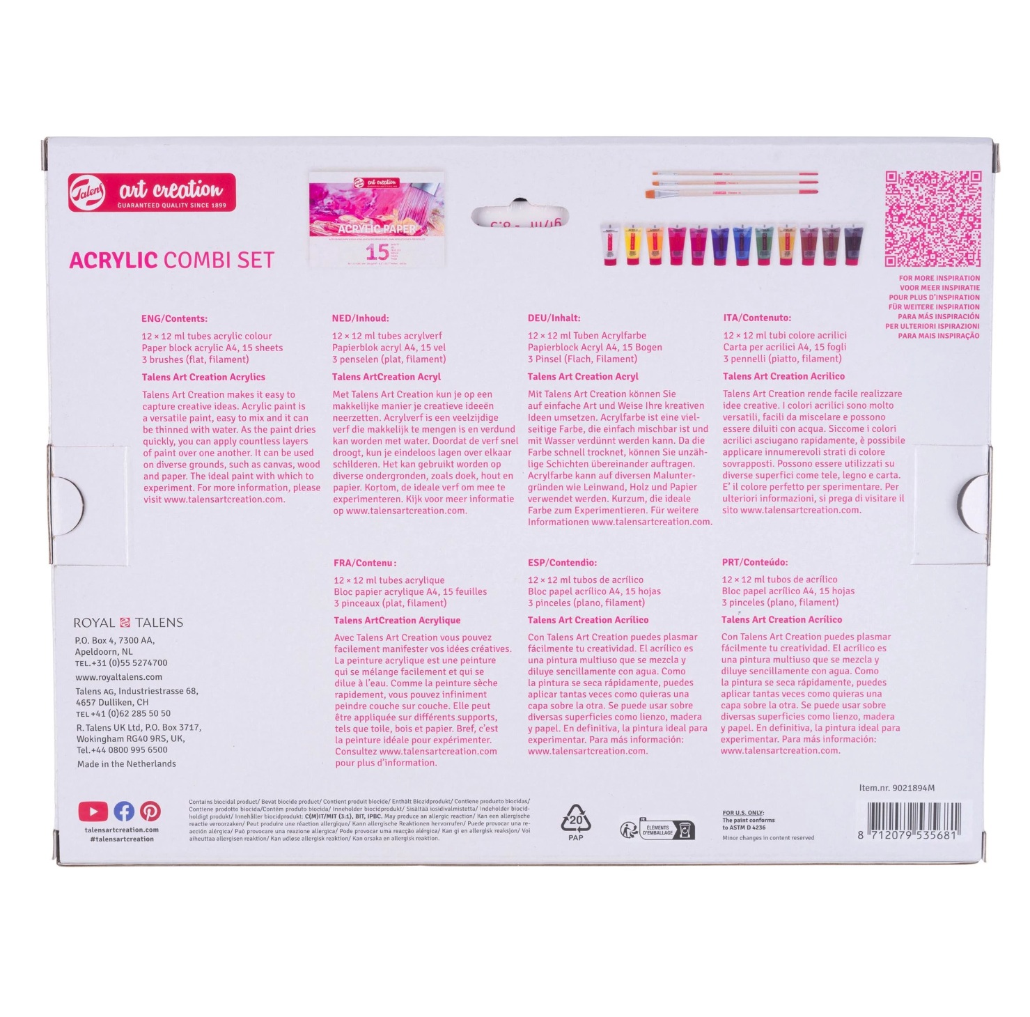 TALENS Art Creation akrüülvärvid 12 värvi 12ml + tarvikud, karbi mõõtmed 550x245x65mm.