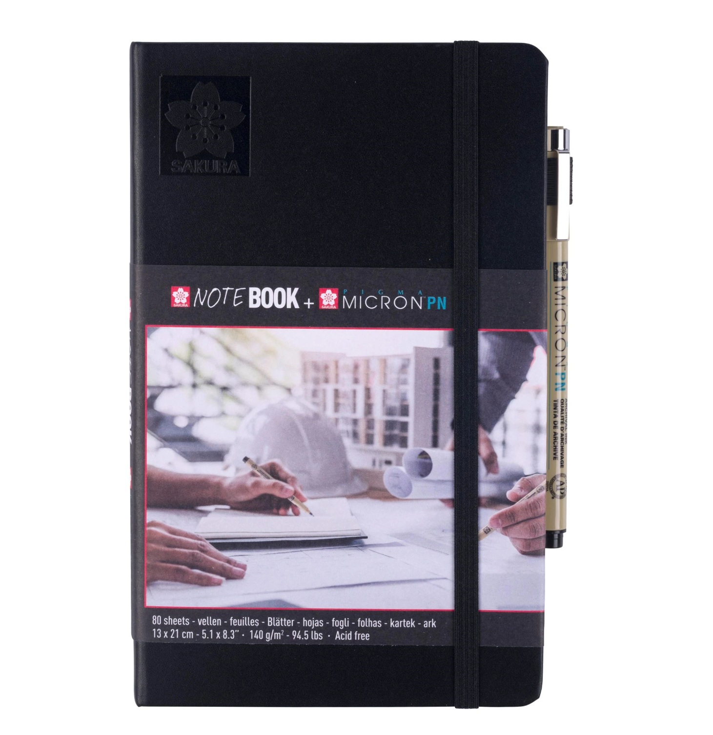 Sakura logoga ja elastse kõva musta kaanega visandiraamat / joonistusraamat 140grammiste valgete happevabade paberilehtedega