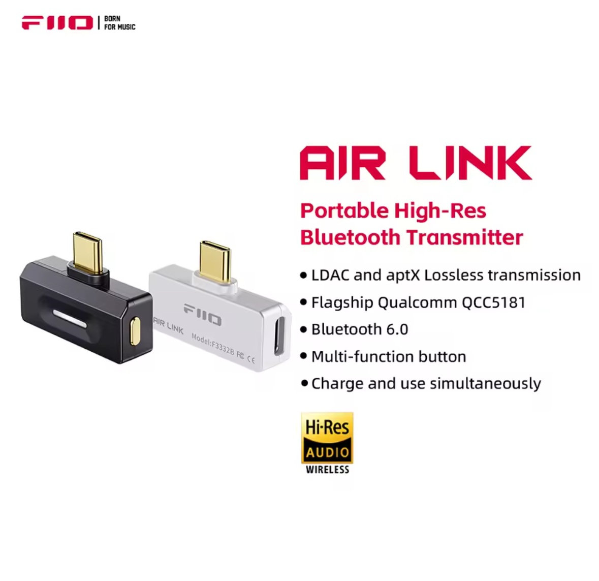 Portatiivne kõrge resolutsiooniga transmitter Air Link Must Bluetooth Fiio UUS!