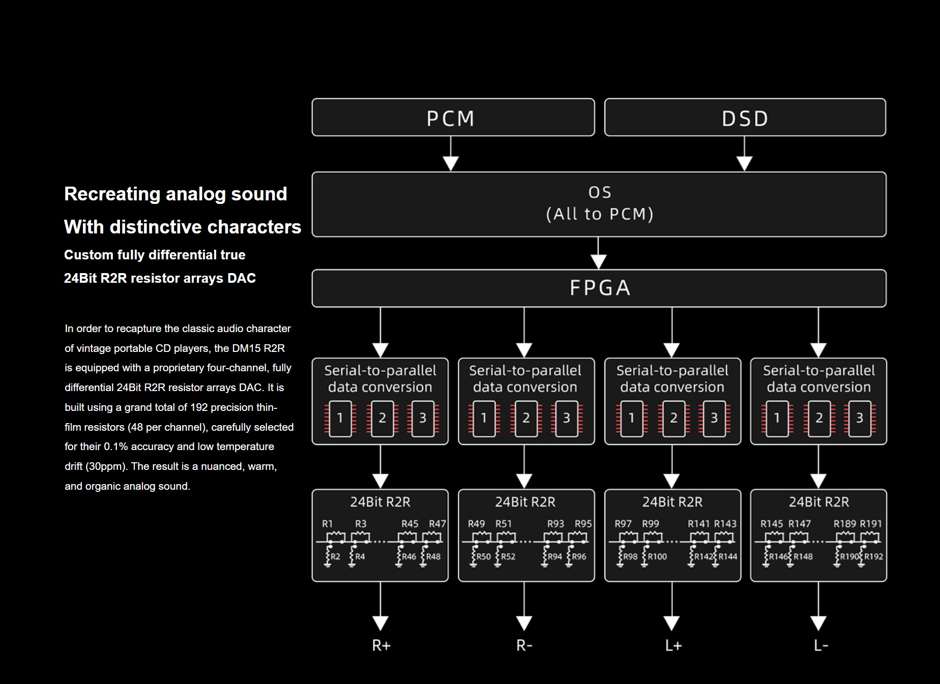 FiiO DM15 R2R on läbimurdeline kaasaskantav CD-mängija, mis toob vintage-ajastu CD-kuulamise tänapäeva, ühendades kompaktses korpuses kõrglahutusega 24-bitise R2R DAC-arhitektuuri, lauaarvutitele sobiva võimsuse ja mitme väljundiga ühenduvuse. Audiofiilidele, kes soovivad autentset CD-heli, loodud FiiO DM15 R2R integreerib ainulaadselt tõelise täisdiferentsiaalse 24-bitise R2R takisti massiivi DAC-i, mis kasutab 192 täppistakistit, pakkudes sooja analoogstiilis heli taasesitust erakordse detailide taastamise ja madala moonutusega. See R2R DAC koos FPGA konversiooni ja patenteeritud MCU kontrolleriga tagab, et iga CD-lt pärit noot dekodeeritakse täpselt ja musikaalselt.