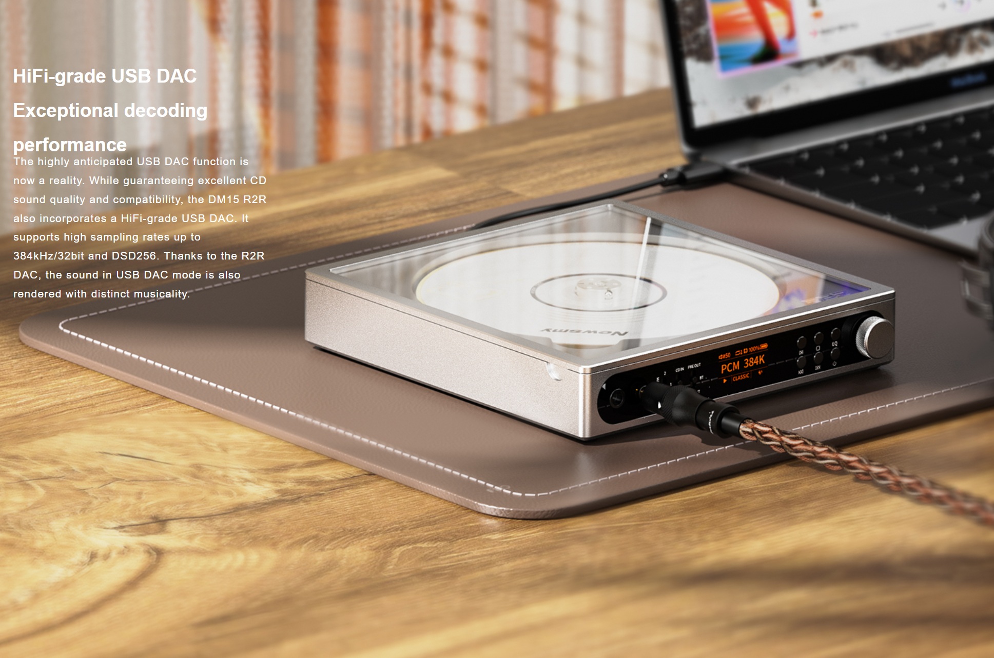 FiiO DM15 R2R on palju enamat kui CD-mängija - see on täielik digitaalne keskus. See toimib Hi-Fi-kvaliteediga USB DAC-ina, mis toetab kuni 384 kHz/32-bitist ja DSD256-d, muutes arvutid, nutitelefonid ja tahvelarvutid kõrglahutusega muusikaallikateks. Samuti on sellel Bluetooth 5.4 saatja, mis kasutab Qualcomm QCC3095 standardit ning toetab aptX, aptX Adaptive, aptX HD ja SBC standardeid, mis tähendab, et CD-sid saab juhtmevabalt voogesitada Bluetooth-kõrvaklappidesse või Bluetooth-kõlaritesse. DM15 R2R toetab isegi USB CD rippimist, võimaldades kasutajatel CD-sid kuulamise ajal WAV-vormingusse rippida, säilitades lemmikalbumeid ja neid hõlpsalt jagades.