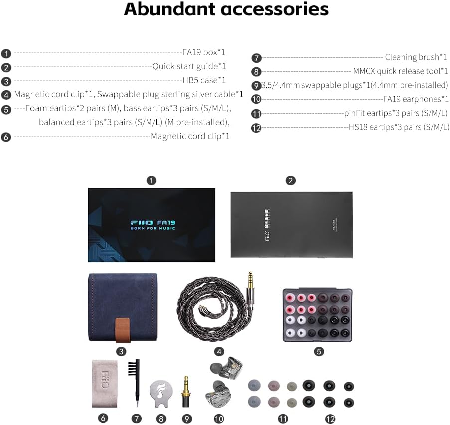 IEMS-i häälestamisel on oluline, et draiveritel oleks piisavalt energiavarusid, et inseneridel oleks piisavalt, millega oma helieesmärke saavutada. Väiksema arvu draiveritega pole see lihtsalt võimalik. Seega kasutab FA19 kümmet silmapaistvat BA-draiverit. Ja füüsiline + elektrooniline kolmeribaline filtri segmenteerib täpselt erinevatel sagedusvahemikel töötavad draiverid, mille tulemuseks on selge, etalonmonitorile sarnane helikvaliteet.