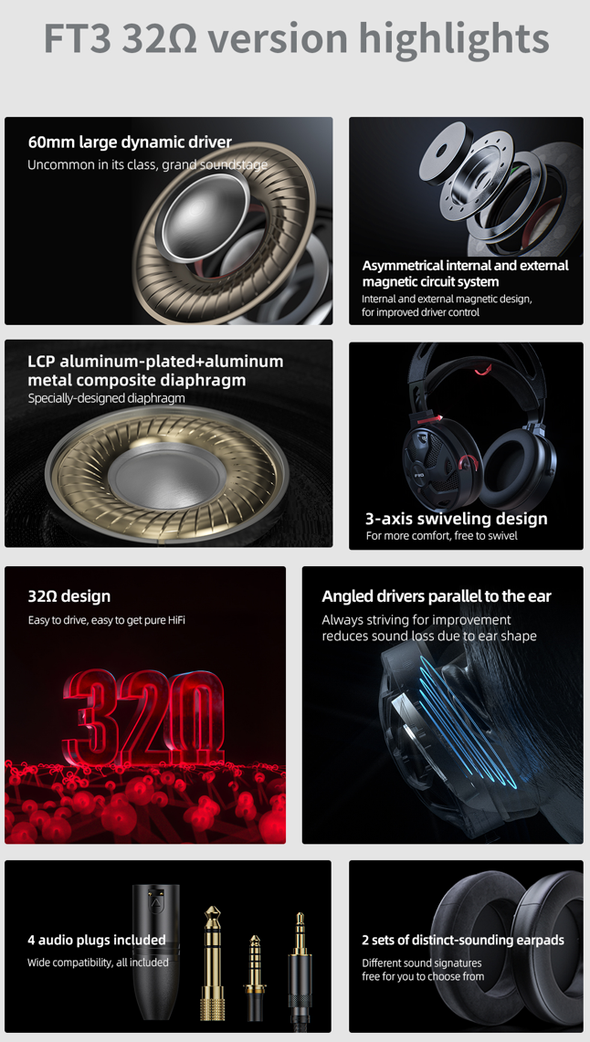 FiiO FT3 on 350 oomi impedantsiga avatud konstruktsiooniga kõrvaklapid, mis pakuvad erakordset heli ja mugavust.