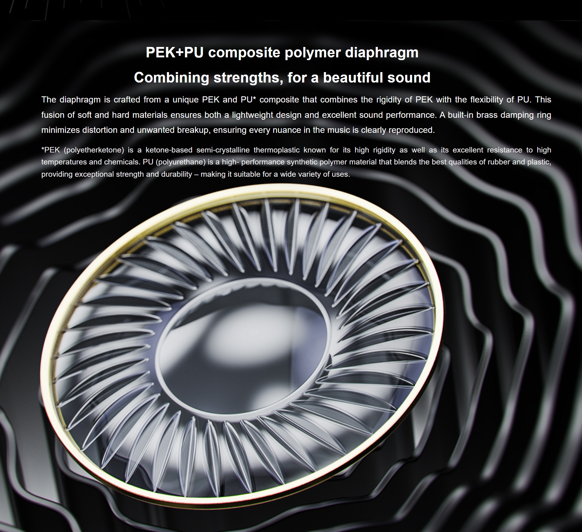 Ülipeen CCAW mähis vähendab membraani kaalu ja tõstab tõhusust ning tundlikkust. Koos parandavad need helidetailide taasesitust.