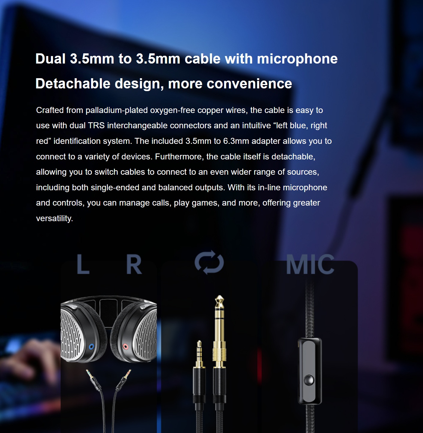 Kaabel on valmistatud palladiumkattega hapnikuvabast vasest. Kahe TRS-pistiku ja selge värvimärgistuse ("vasak - sinine, parem - punane") tõttu on kasutamine lihtne.