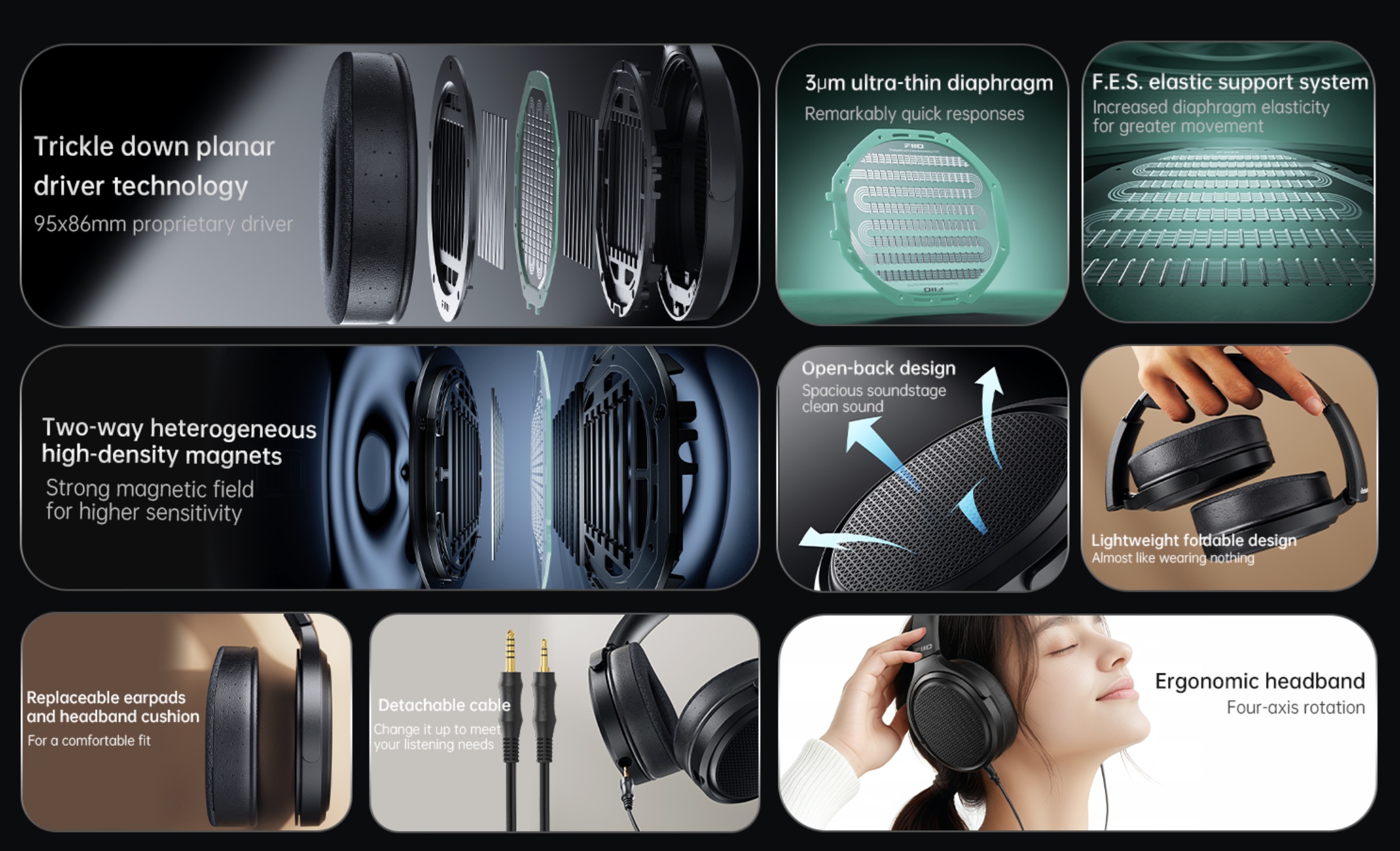 FiiO JT7 on patenteeritud tehnoloogia ja planaartehnika põhjalike teadmiste kulminatsioon, mis on integreeritud kergesse ja kokkupandavasse disaini. Sisaldab 95x86 mm patenteeritud planaarkõlarit. Kahesuunalised heterogeensed suure tihedusega magnetid. 3 µm üliõhuke diafragma märkimisväärselt kiire reageerimisajaga.