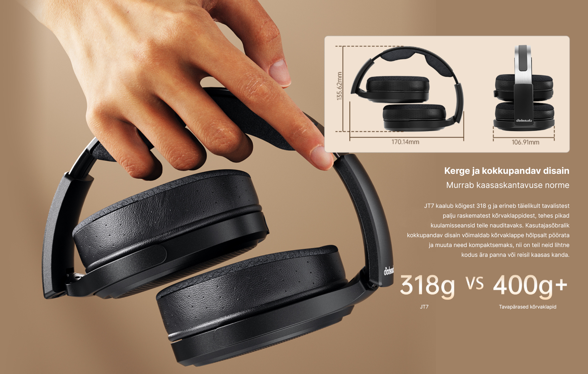 95x86 mm tasapinnaline draiver. FiiO on JT7 draiveri arendamiseks algusest peale palju vaeva näinud, kontrollides iga aspekti alates membraani uurimis- ja arendustegevusest kuni mähise ja magnetahelani. Täielikult ettevõttesiseselt väljatöötatud disain tagab ühtlase ja suurepärase helikvaliteedi. Suuremõõtmeline tasapinnaline draiver võimaldab teil nautida avarat helipilti ja võimsat, energilist bassi. Üliõhuke membraan: Selleks, et tasapinnaline draiver pakuks oma iseloomulikku kiiret vibratsiooni ja tundlikku reageeringut, peab see olema erakordselt õhuke. JT7 membraani paksus on vaid 3 µm, mis võimaldab tal täpselt tabada elektrisignaali väikseimaid muutusi. Tulemuseks on suurepärane siirdekarakteristik ja säravalt selged kõrged sagedused, mis kindlasti teie kõrvu paitavad meeldiva helipidiga. Kerge ja kokkupandav disain. F.E.S. (FiiO elastne süsteem): JT7 kõrvaklappide membraanil on patenteeritud F.E.S. disain, mis sisaldab pinnal mitmemõõtmelisi tekstuure. Need tekstuurid, mis sarnanevad dünaamilise kõrvaklapi ümbritseva rõngaga, suurendavad membraani elastsust. See võimaldab täpset kontrolli sisemise pinge üle, võimaldades kõrvaklapil vabamalt liikuda ilma täiendavate moonutusteta. Tulemuseks on pingutuseta bass, millel on suurem kohalolek. Tugev magnetväli: JT7 92 dB/mW tundlikkus on tingitud võimsast magnetväljast, mille tekitavad suure jõudlusega kahesuunalised neodüüm-raud-boormagnetid. Need magnetid annavad tasapinnalisele kõrvaklapile tugeva ja piisava liikumapaneva jõu, võimaldades valjemat ja täidlasemat heli isegi nõrgematest heliallikatest.Täppisjuhtmestik, sujuv disain: Kõrvaklapid on valmistatud sama esmaklassilise protsessi abil nagu FT1 Pro ja FT7. Tootmisprotsess on tuletatud pooljuhtide tööstuses kasutatavast ülitäpsest plaadistusest, mis võimaldab mähise ja membraani sujuvalt üheks tükiks integreerida. See mitte ainult ei taga äärmiselt peent mähise juhtmestikku, vaid suurendab oluliselt ka mähise konstruktsioonilist terviklikkust. Kasutajakeskne innovatsioon: JT7 kaalub kõigest 340 grammi ja erineb täielikult tavalistest palju raskematest tasapinnalistest kõrvaklappidest. Kasutajasõbralik kokkupandav disain võimaldab kõrvaklappe hõlpsalt pöörata ning muudab need kompaktsemaks, et neid oleks lihtsam hoiustada ja kaasas kanda.