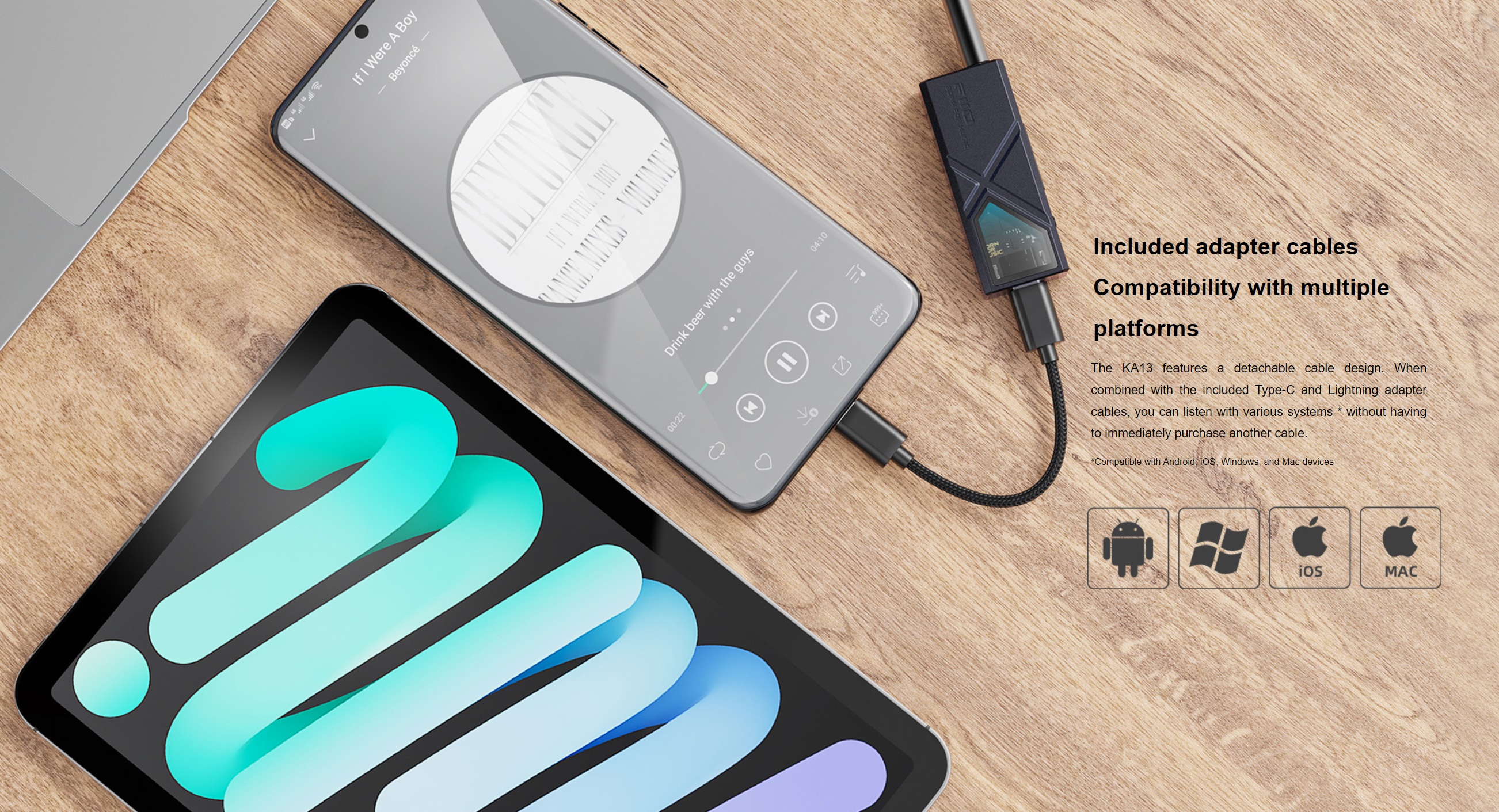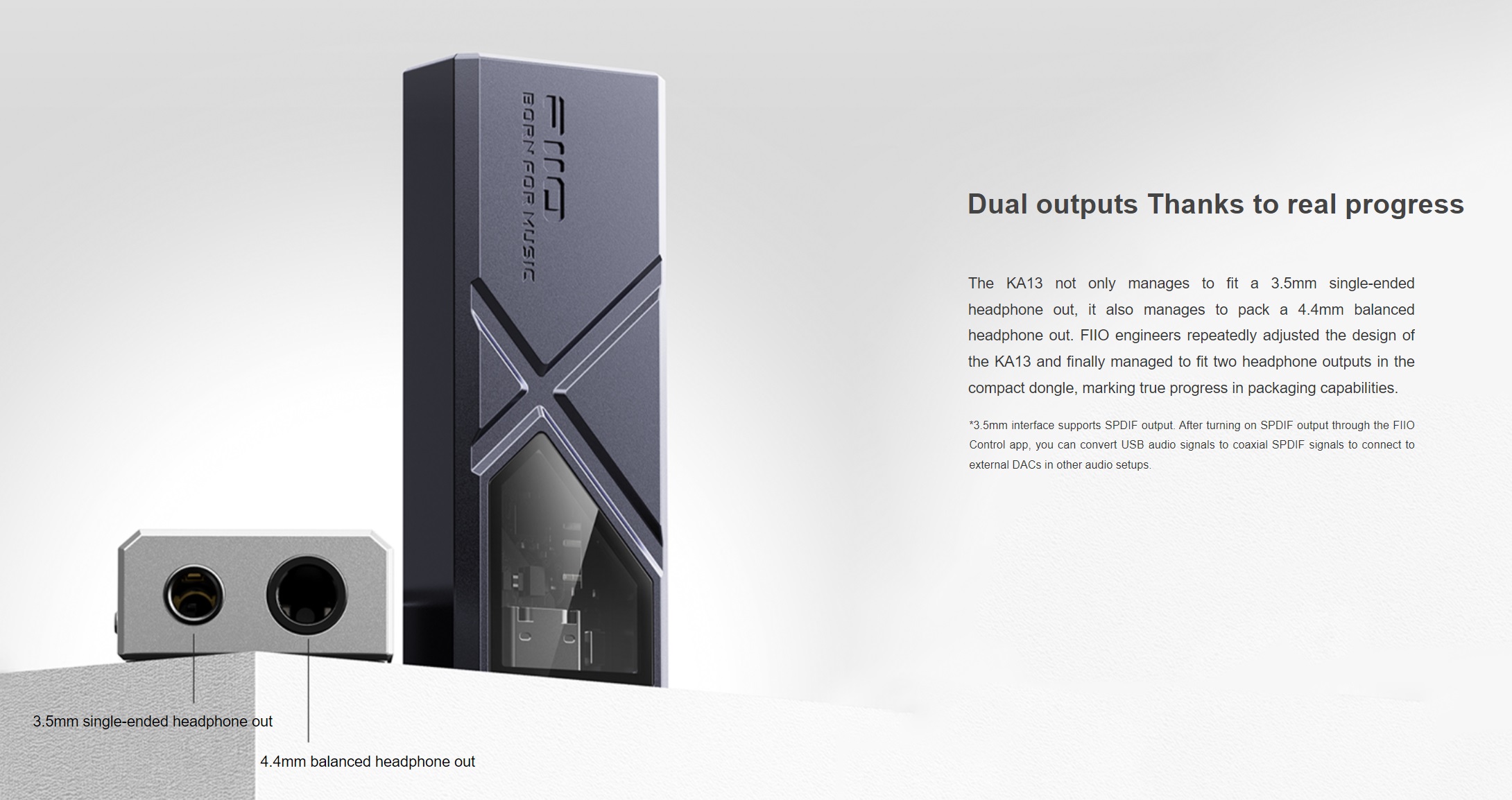 FiiO/JadeAudio KA13 Dual CS43131 kadudeta kaasaskantav DAC-võimendi C-tüüpi USB-pordiga 3,5 mm ühe otsaga ja 4,4 mm tasakaalustatud väljundiga, PCM 384 kHz/32 bitti | DSD256 550mW suure võimsusega.