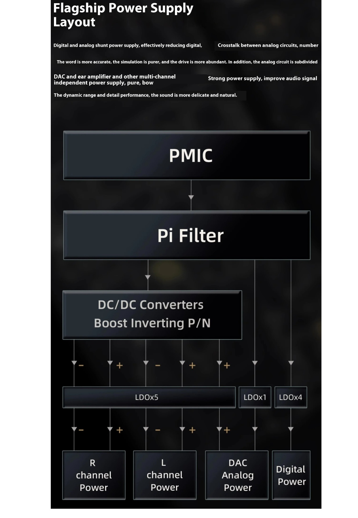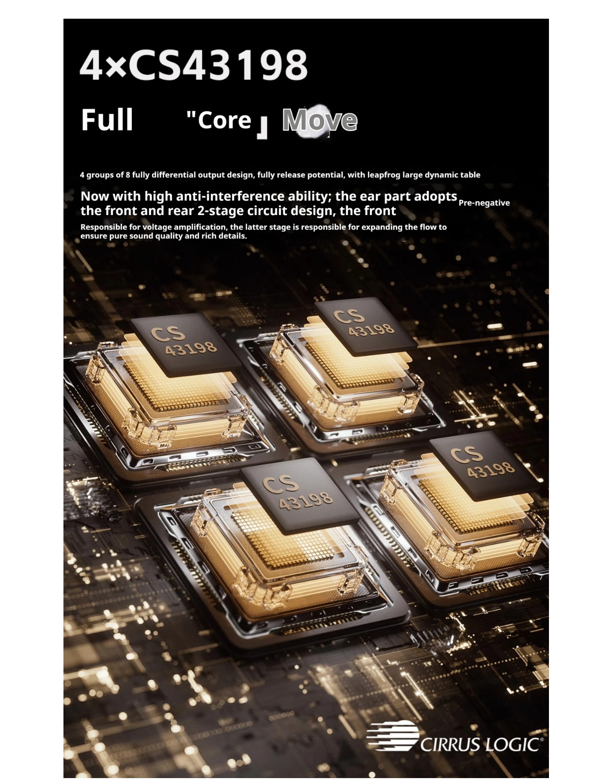 " Võimas nelik-DAC arhitektuur (neli CS43198 kiipi) - selge ja dünaamiline heli