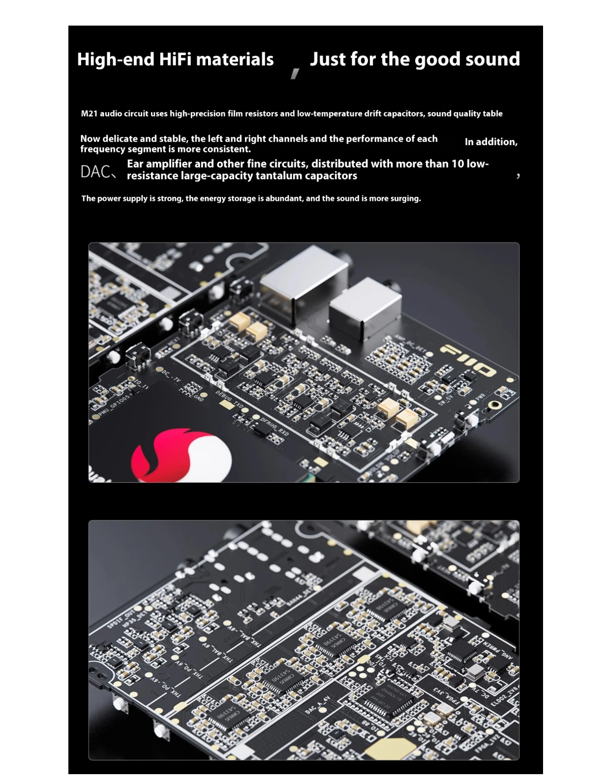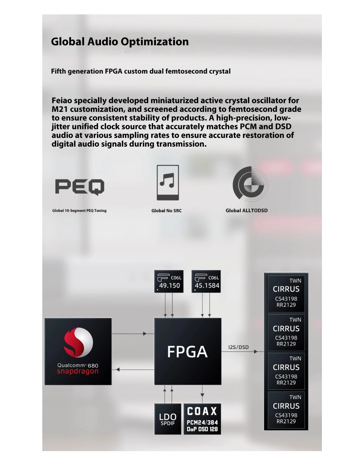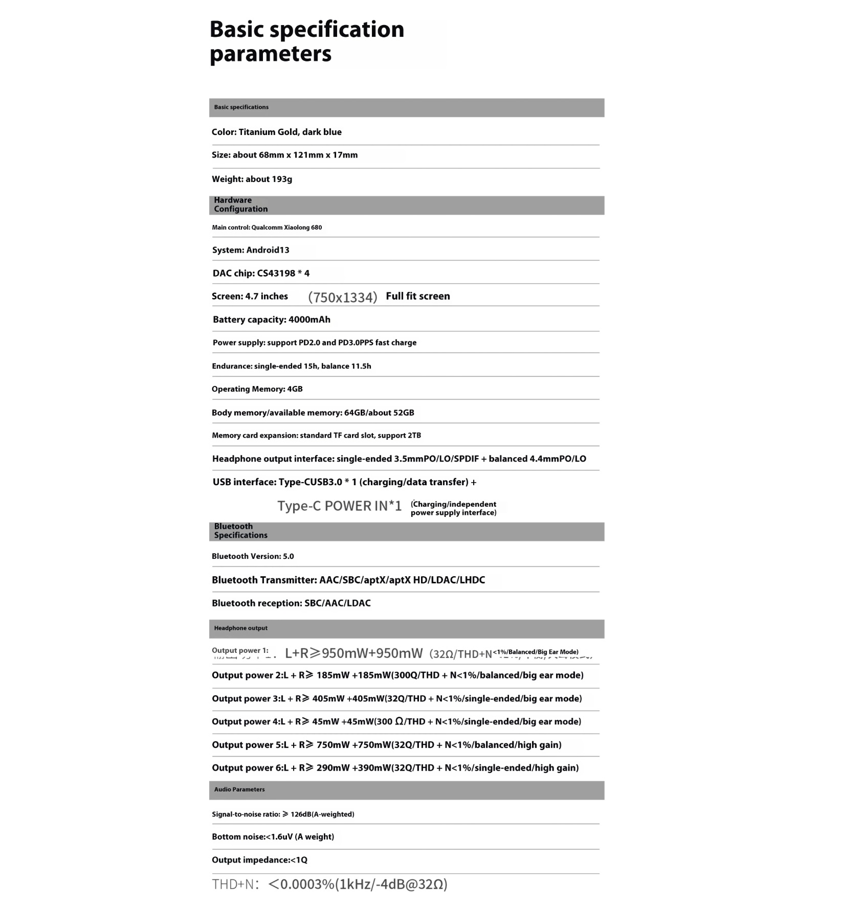 Seade on varustatud nelja kõrgekvaliteedilise Cirrus Logic CS43198 DAC-kiibiga ning töötab Qualcomm Snapdragon 680 protsessoril, tagades võimsa ja selge heliesituse.