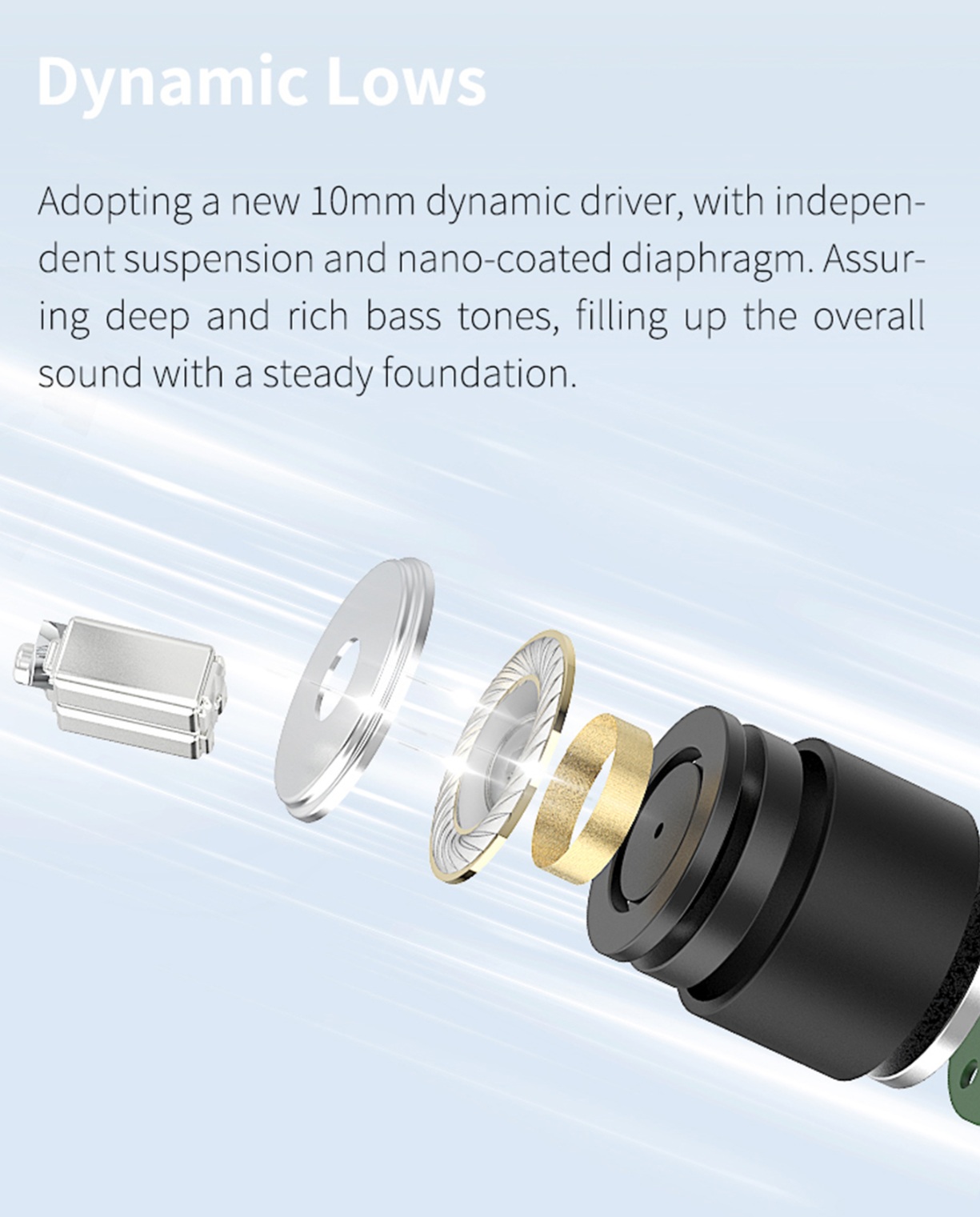 Shanling tegi nende draiverite rakendamisel otse koostööd Knowles'i akustikameeskonnaga, et tagada ideaalne integratsioon dünaamilise draiveriga kõige sidusama heli saavutamiseks.