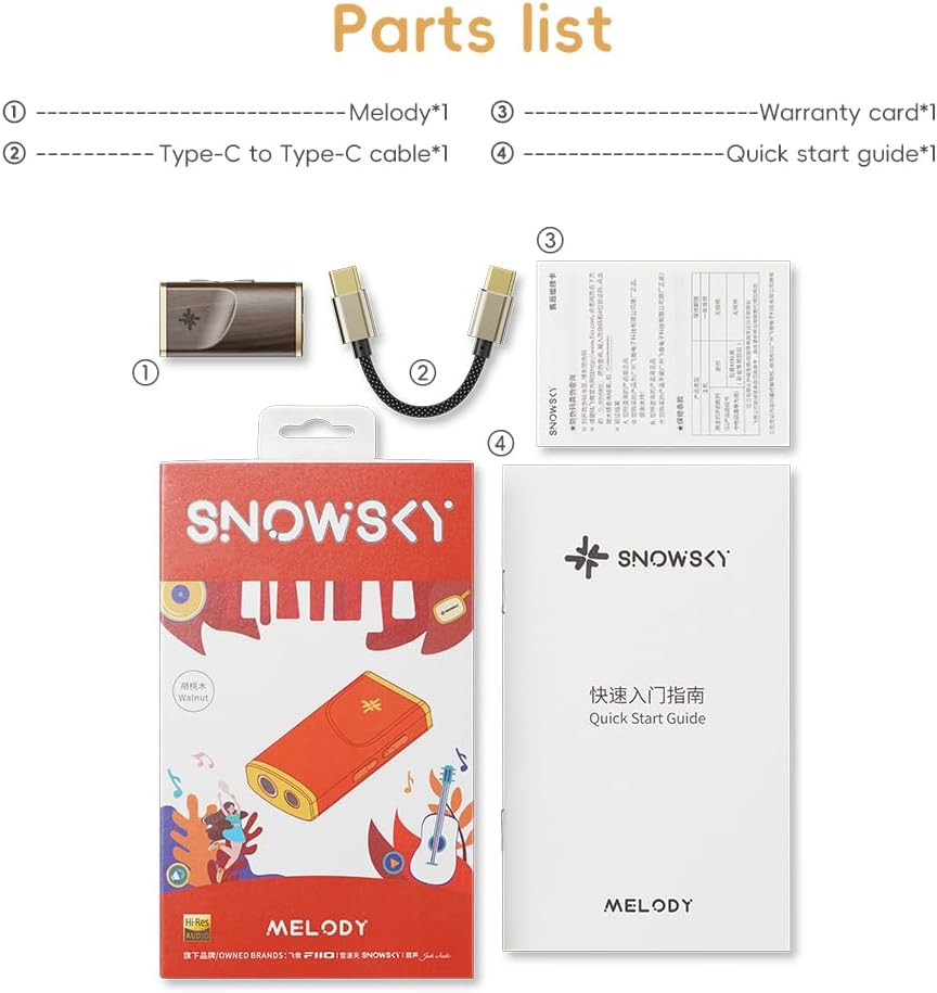 FiiO SnowSky Melody – Puidust kaasaskantav DAC ja kõrvaklappide võimendiLoodusliku elegantsi ja kõrge resolutsiooniga heli sulamFiiO SnowSky Melody on ainulaadselt valmistatud taskusuurune heliseade, mis ühendab audiofiilidele sobiva DAC-i jõudluse kauni puidust disainiga. Iga Melody seade on nikerdatud vanandatud Põhja-Ameerika pähkli- või vahtrapuust, kasutades CNC-töötlust, hoolikat poleerimist ja õlitamist, et luua vapustav viimistlus, mis parandab ka akustilist resonantsi.Selle elegantse puidust korpuse sees on kaks Cirrus Logic CS43131 DAC-kiipi, mis tagavad suurepärase digitaal-analoogmuunduse kuni 384 kHz/32-bitise PCM-i ja DSD256 formaatide toega. Olenemata sellest, kas sinu esitusloend koosneb kadudeta PCM-ist või väljendusrikast DSD-st, pakub Melody selgust ja sügavust, mis ületab selle väikese suuruse ootusi.Esipaneelil on nii 3,5 mm üheotsaline kui ka 4,4 mm tasakaalustatud kõrvaklappide väljundid, mis sobivad igale kuulamisseadistusele. Tasakaalustatud väljund pakub kuni 250 mW kanal kohta, tagades suurema võimsuse ja täiustatud dünaamika. Lisaks toimib 3,5 mm pesa ka SPDIF/koaksiaalväljundina ning toetab sisseehitatud mikrofoni ja kaugjuhtimispuldi funktsioone, lisades mugavust mobiilseks kasutamiseks ja otseülekannete jaoks.Melody kasutajaliides on täiustatud praktiliste funktsioonidega, nagu mitmevärviline RGB-sämplimissageduse indikaator, kaks kohandatavat helitugevuse reguleerimise režiimi ning juurdepääs 10-ribalisele parameetrilisele ekvalaiserile (PEQ) läbi FiiO Control rakenduse või veebiliidese. Seade on loodud hoidma kuumust ja energiatarbimist ülimalt madalal – ideaalne pikkadeks kuulamisseanssideks –, mida toetavad unerežiim ja madal ooterežiimi voolutarve, et säästa seadme akut.Kompaktne ja stiilne FiiO SnowSky Melody on loomuliku kõlaga audiofiilide aksessuaar, millele lisab elegantsi puidust disain.