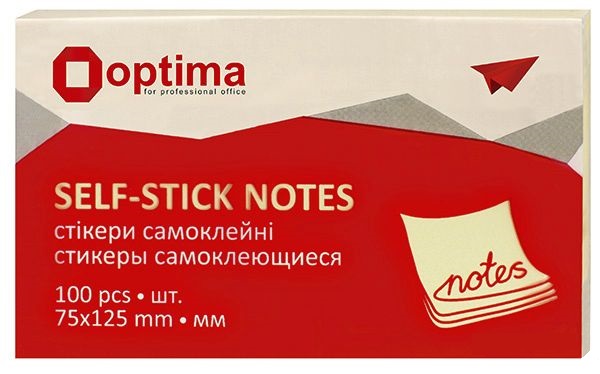 Märkmepaber Optima 75x125mm, kollane 100 lehte/pk